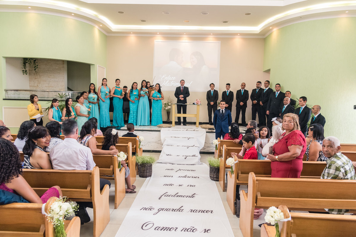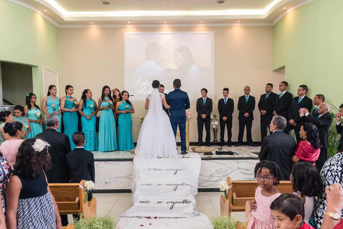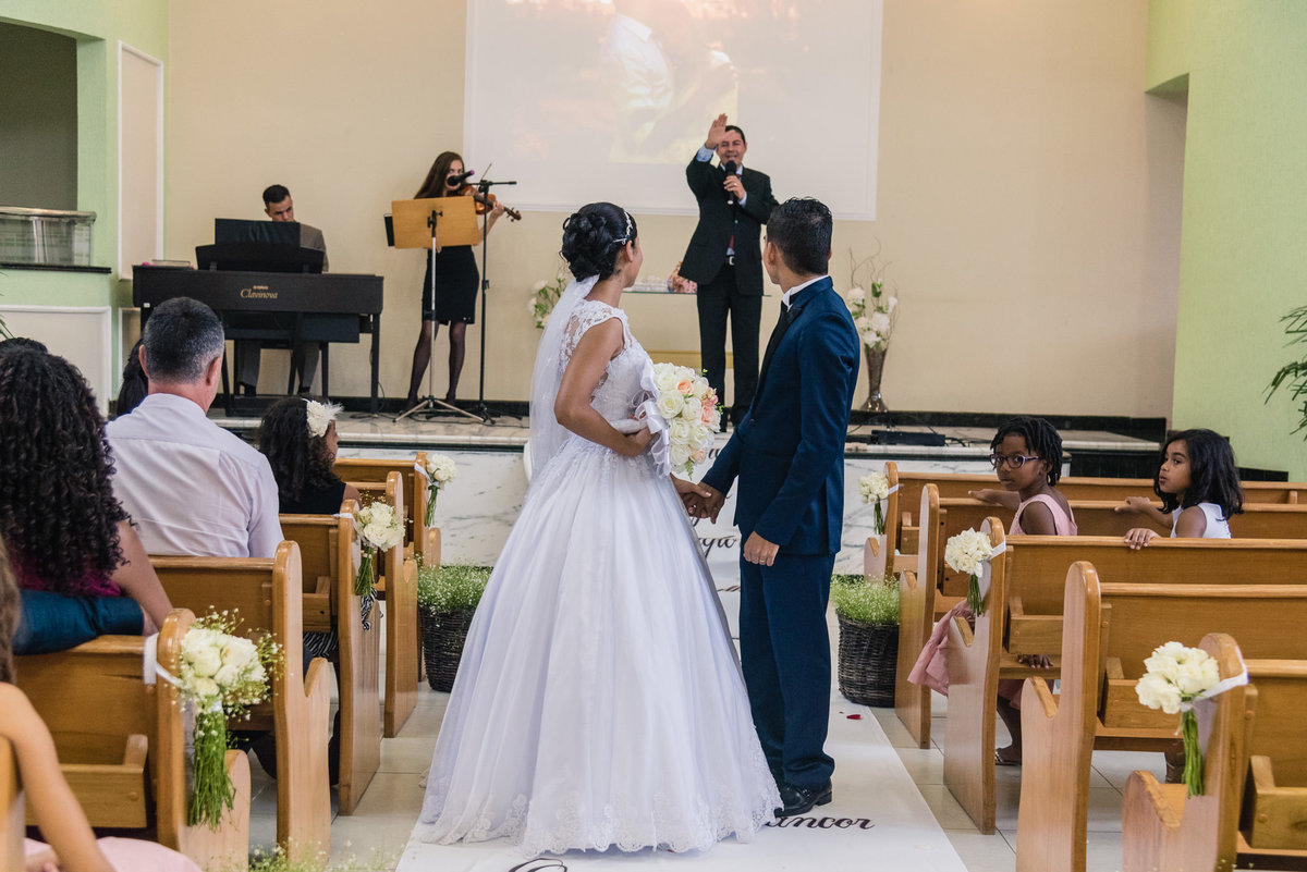 As trocas de mensagens levaram ao convite para sair, e logo veio o convite para namoro , após o sim aconteceu o nosso primeiro beijo, meses de namoro se passaram até chegar nos anos em que entendemos que já não podíamos mais viver longe um do outro! Foi onde decidimos nos casar e essa foi a melhor decisão que tomamos juntos até aqui."